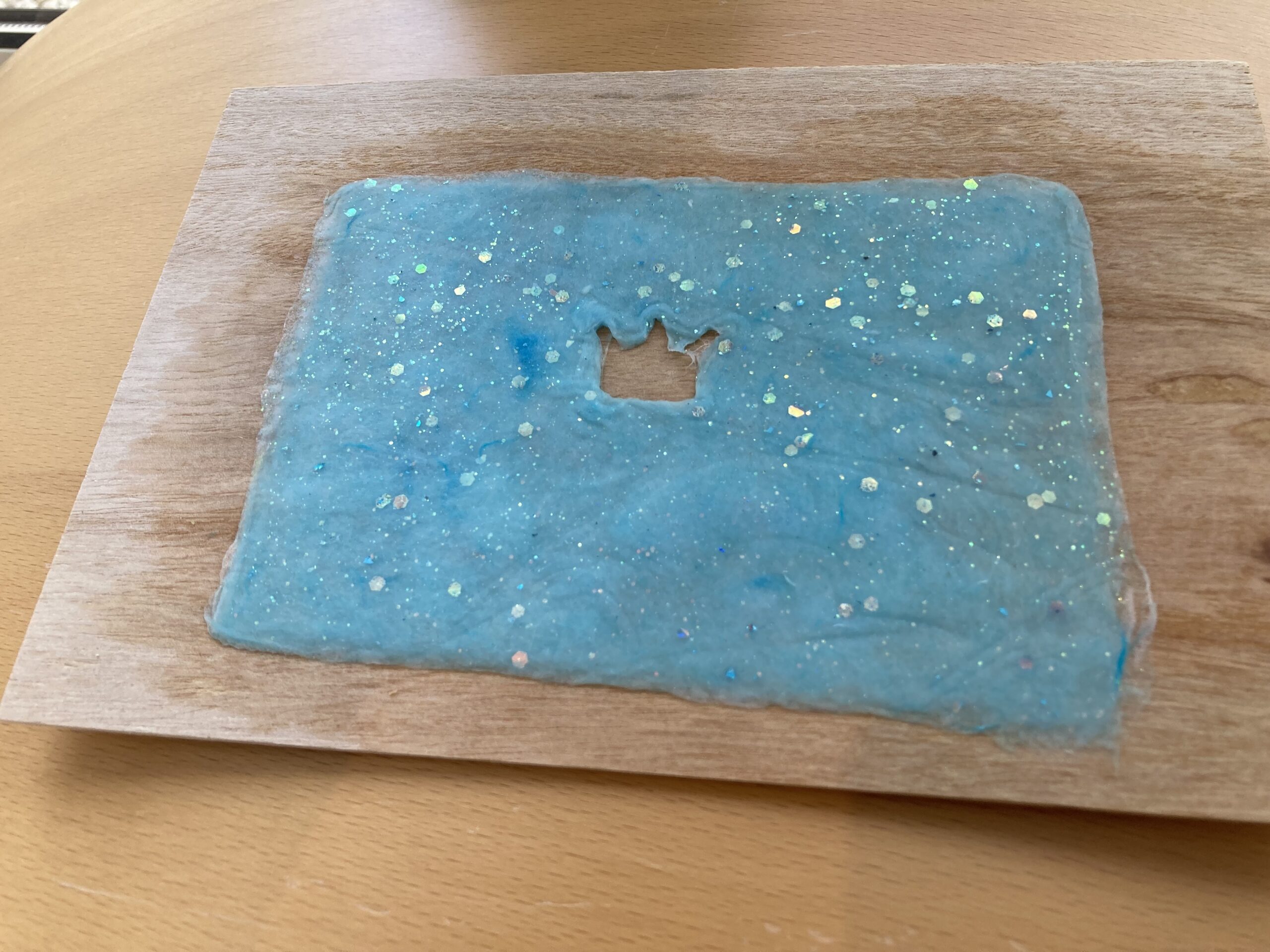 木の板に乗せて持ち帰りました。乾かすともう少し薄い色になるそう。楽しみ!