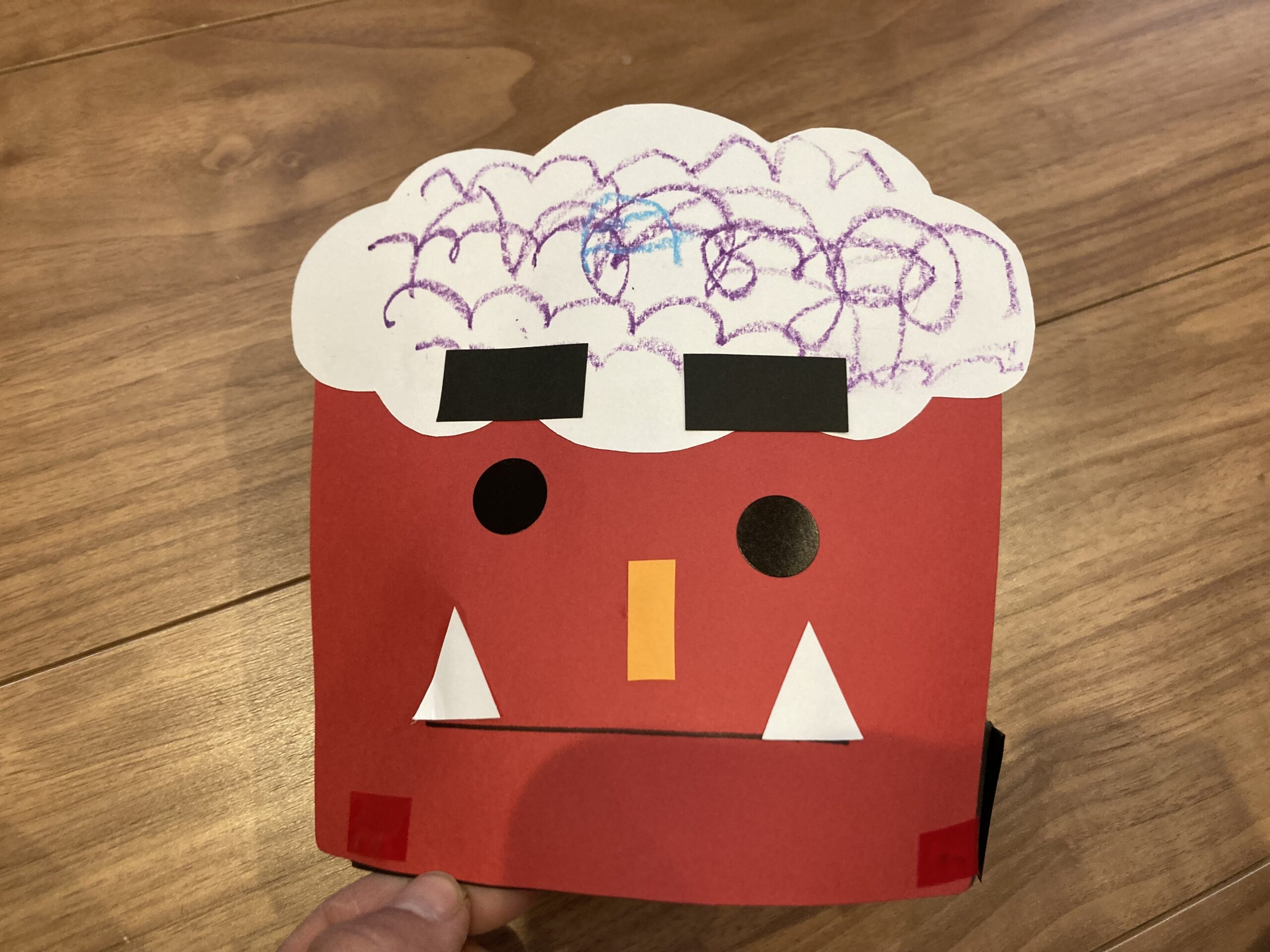 お迎えに行ったら幼稚園で作った鬼のお面を付けていて可愛かったです☺️⬇️良い表情😂