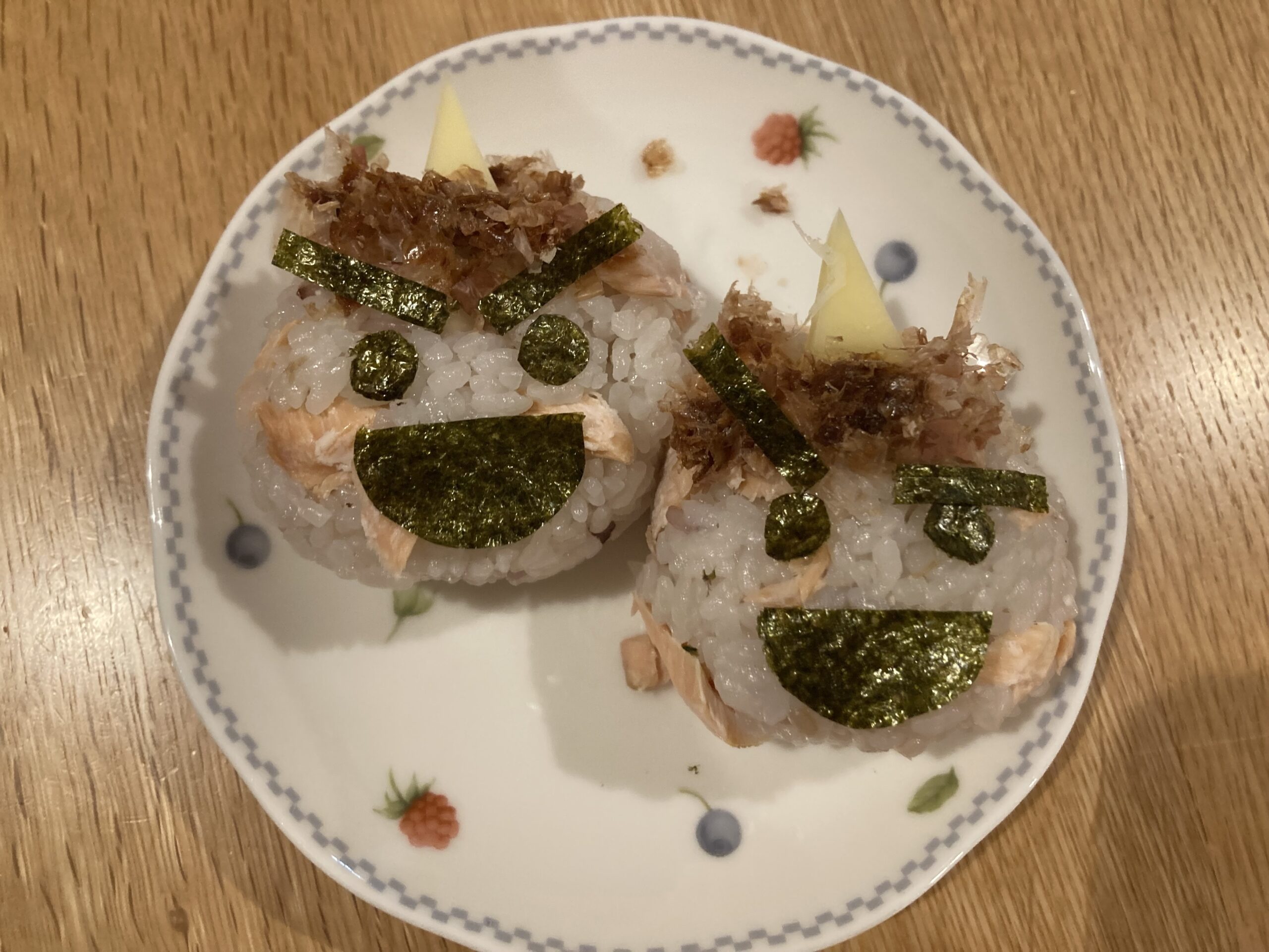 節分メニューとか何も考えていなかったので家にあるもので鬼のおにぎりを作りました。