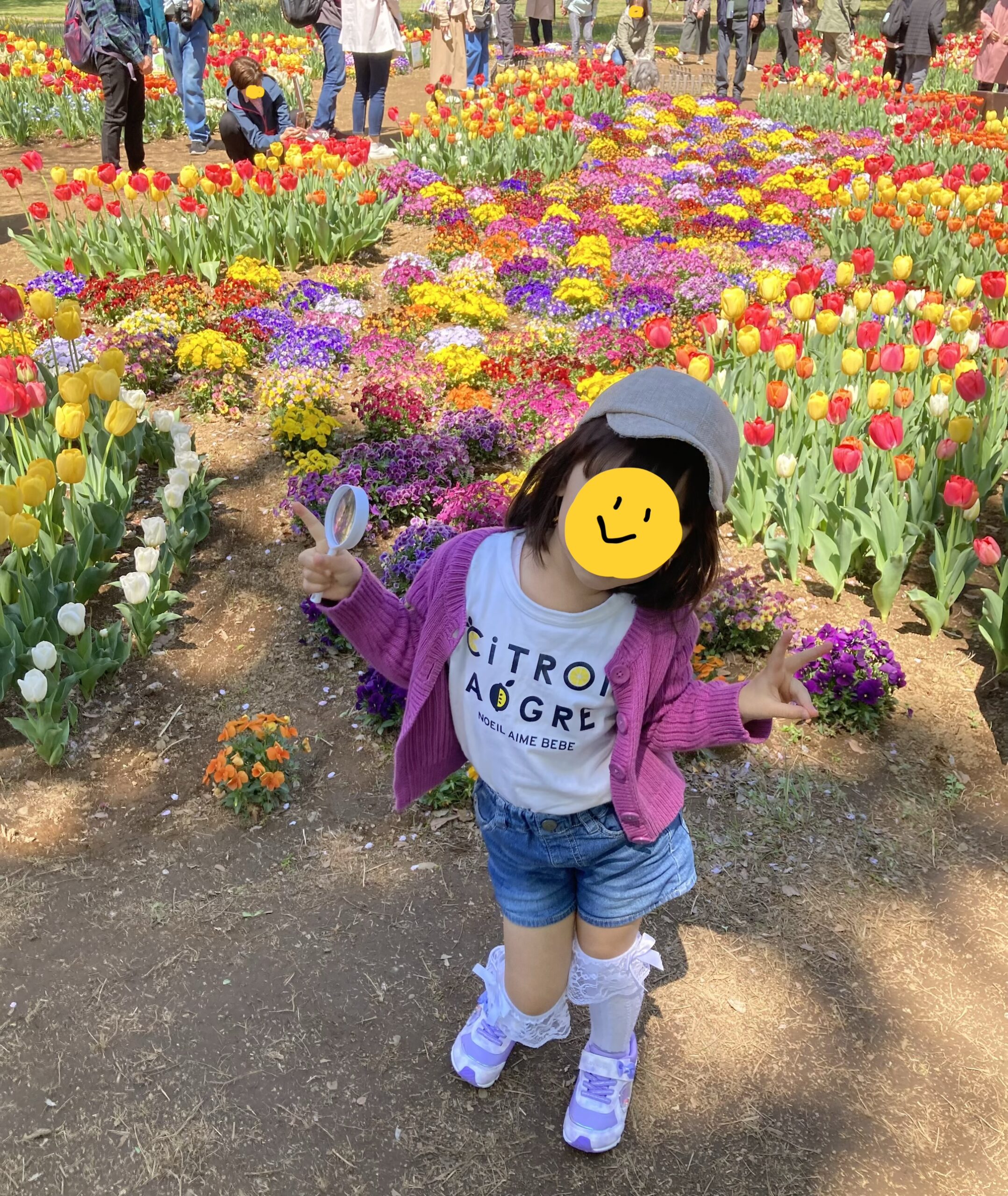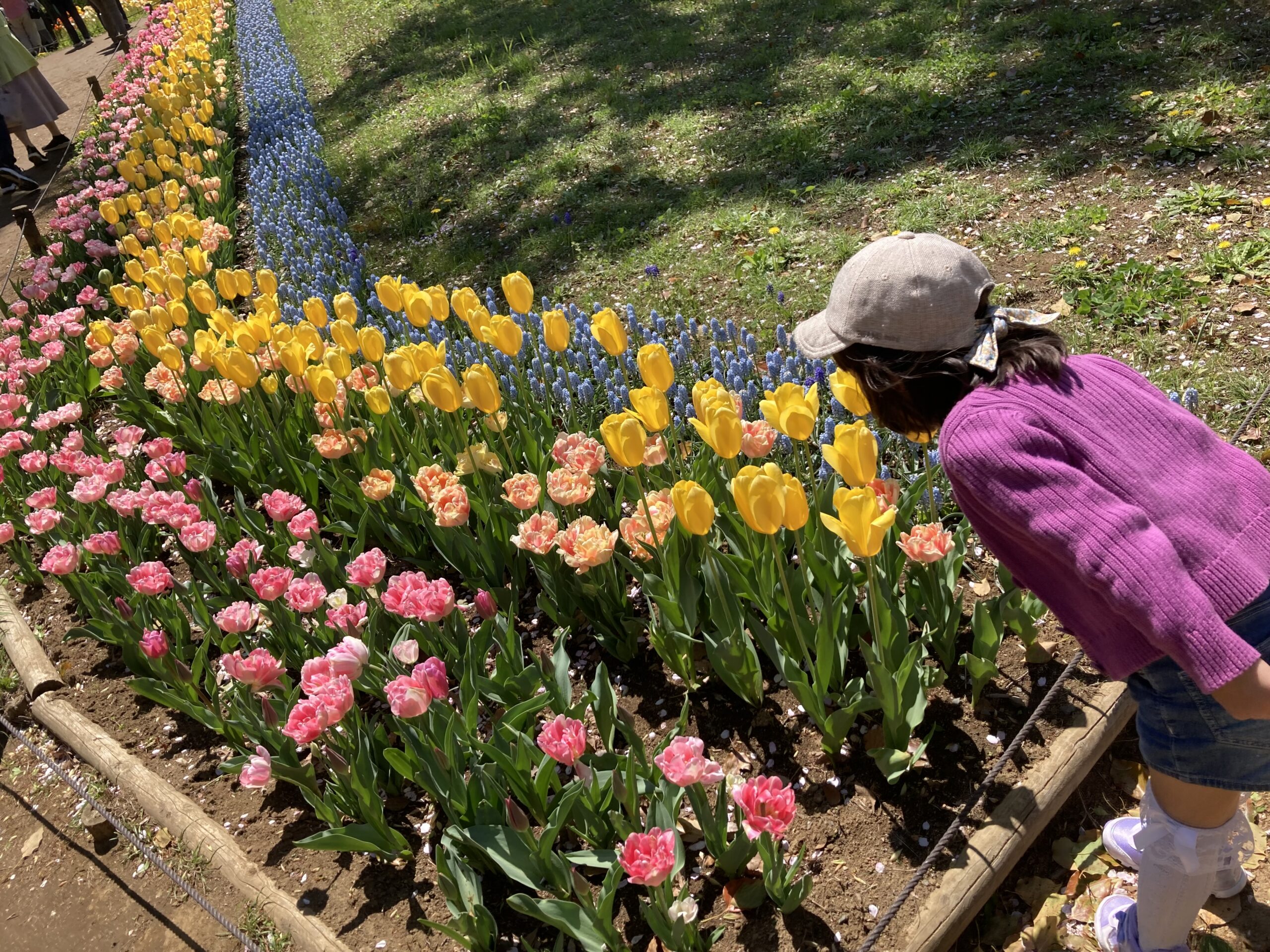 娘も上から見たり匂いを嗅いだり、楽しんでいました🌷