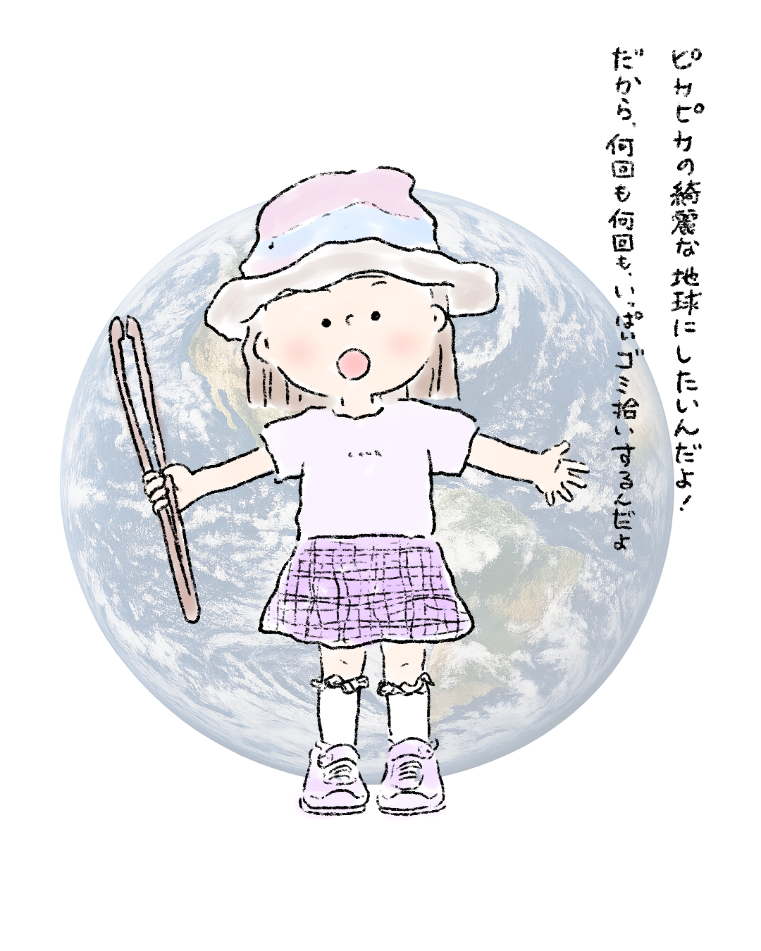 歩いている途中で娘が突然「りっちゃんはね、ピカピカの地球にしたいんだよ!だから何回も何回もいっぱいゴミ拾いするんだよ!」とアツく話し出してビックリしました。