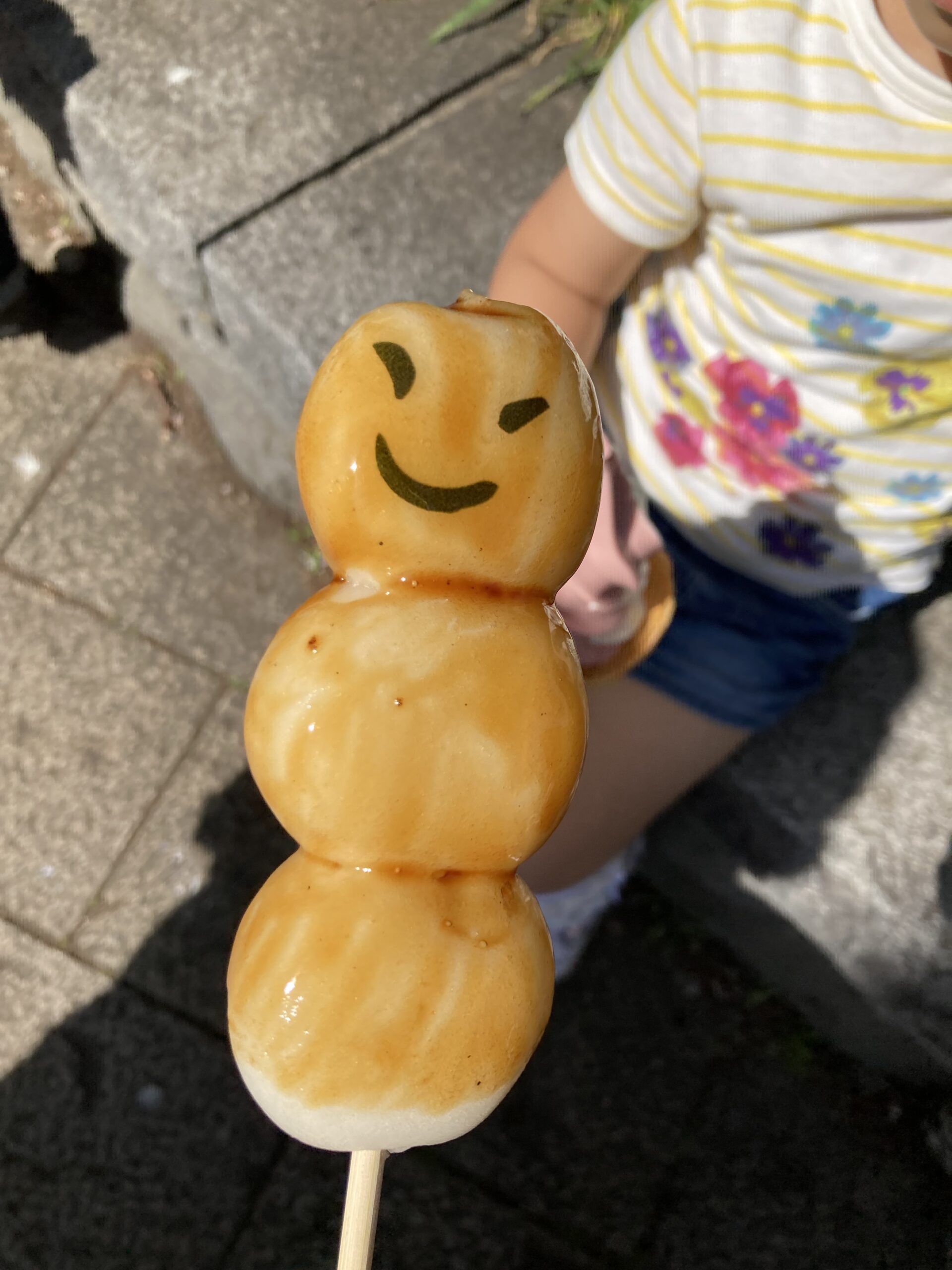 私はお団子、娘はアイス。お団子に顔が付いていてかわいい☺️