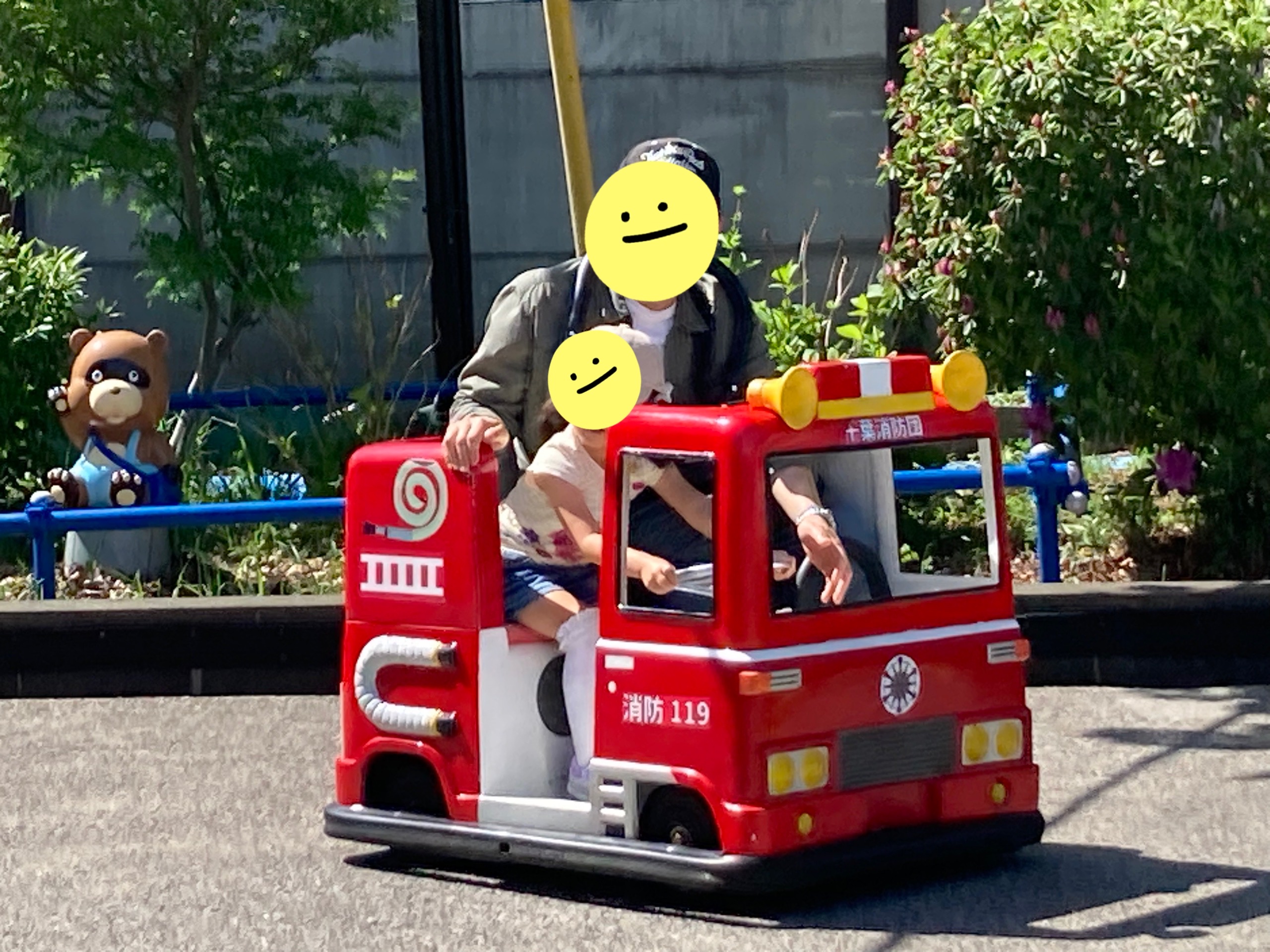 4歳児は1人で乗れるという事で娘は1人で乗る!と言っていましたが、直前で「やっぱりお母さんと乗る。。」ってなって私も隣に乗りました😂乗り物は1回100円です。