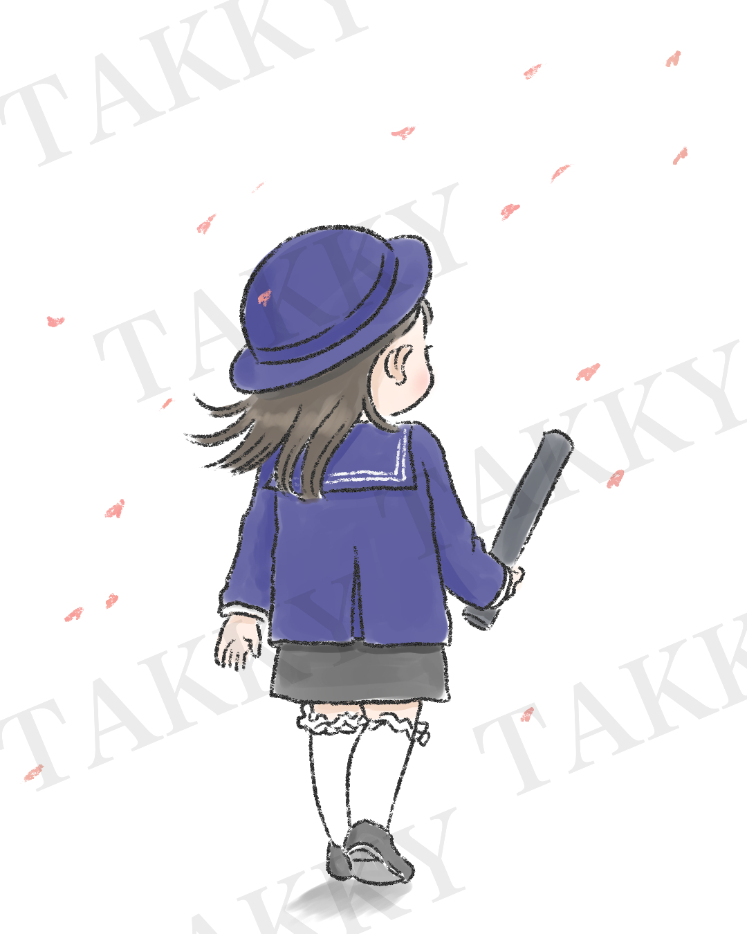 1枚目は卒園のイラスト🌸子どもたちの後ろ姿を見るといろいろな想いが溢れる。あんなに小さかった背中が、この日は大きく頼もしく見える。