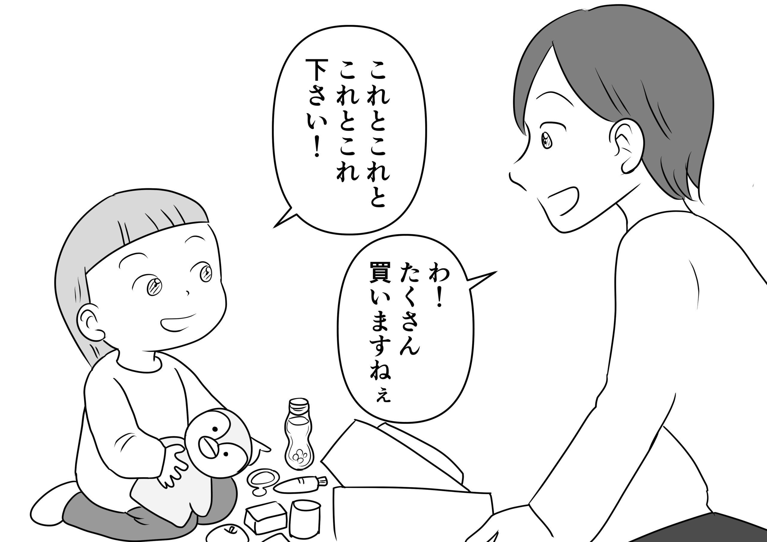 【子育て漫画】第53話 2歳5ヶ月頃の様子 2026年03月03日 こんにちは、たっきーです。 今日は娘が2歳5ヶ月の頃の様子を載せました。 お買い物ごっこに夢中になっていた時期です。 支払いは適当です😂 この記事は2026/03/03に公開され2026/03/03に更新、2 ビュー読まれました。 2026/03/03 2026/03/03 2歳児, 保育4コマ, 日記 #2歳, #4コマ漫画, #あそび, #おうち遊び, #たっきー先生, #保育, #保育士, #子ども, #子育て, #漫画, #育児