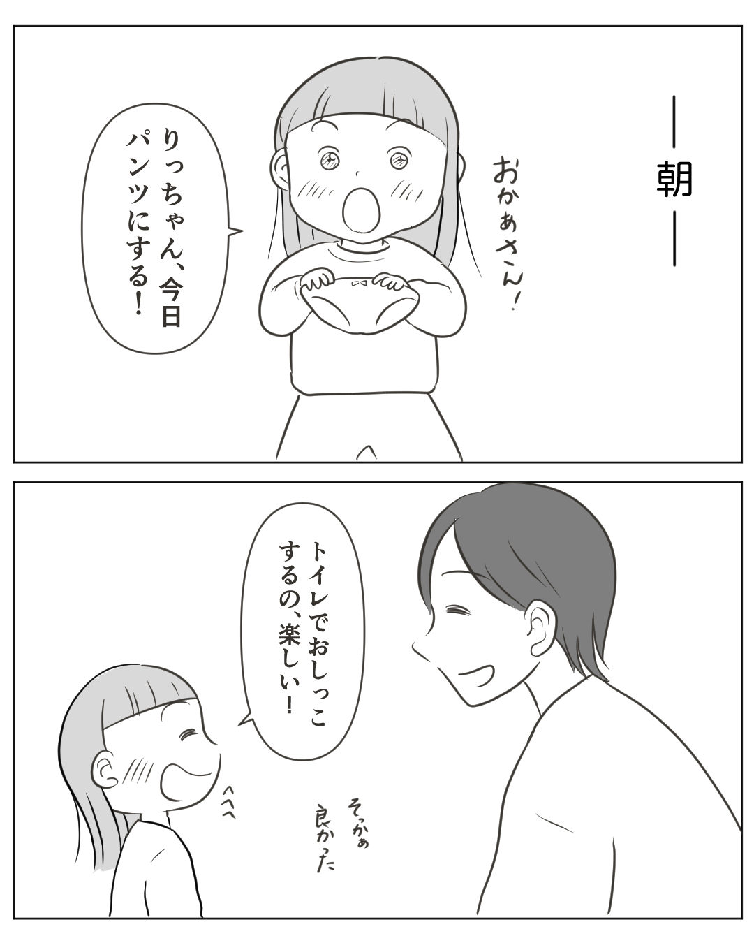 トイレでおしっこをするのが嬉しくてしょうがない!朝からパンツにする!と張り切る娘。