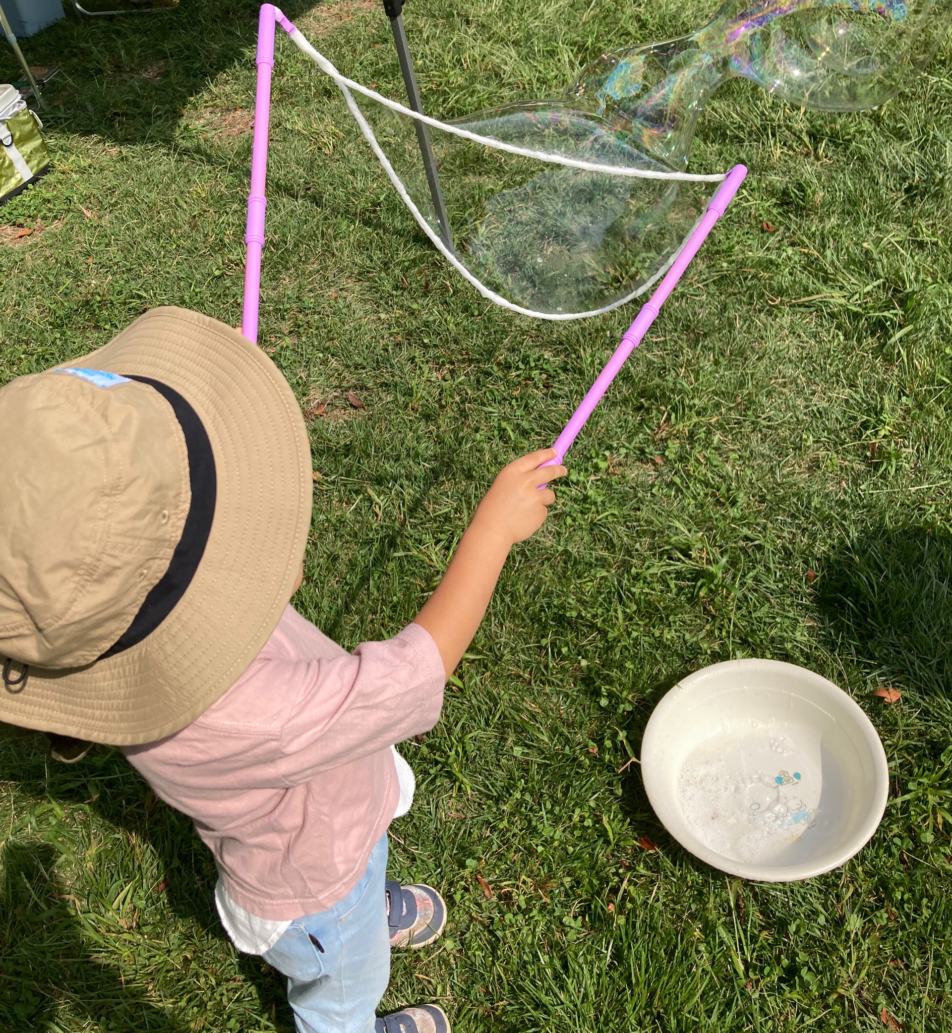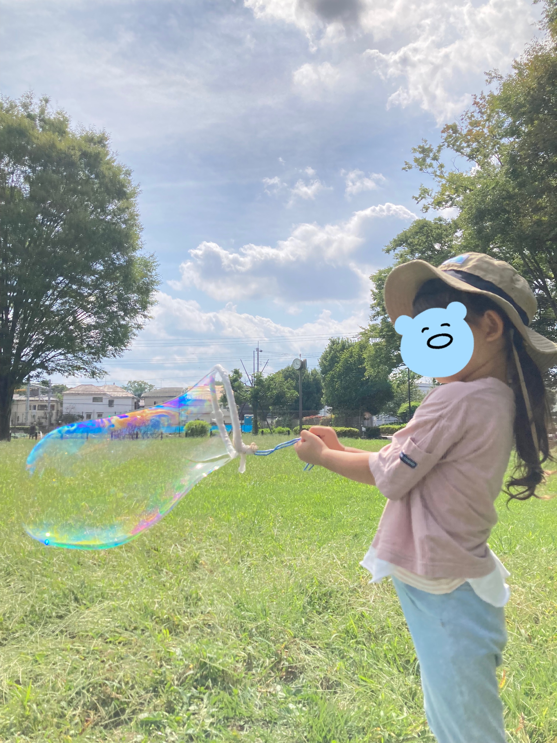 大きなシャボン玉もやったよ!風が勝手にシャボン玉を作ってくれる。すごい大きさにびっくり!